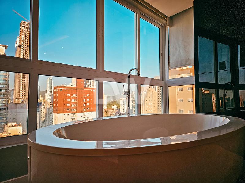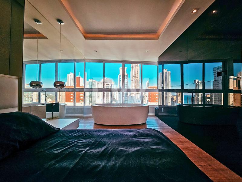A cobertura duplex está finamente mobiliada, equipada e decorada e conta com 04 suítes (01 sendo master com hidro e sauna), 284 m² de área privativa.